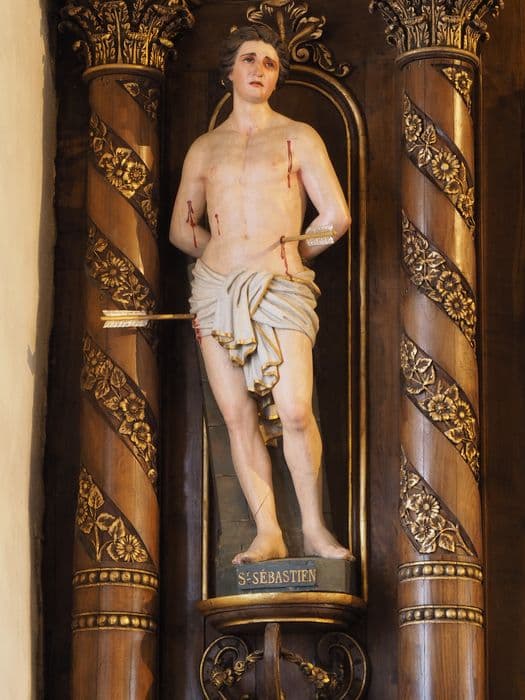 POP | Plateforme ouverte du patrimoineautel, boiseries, tableau : Sainte Famille (La), 2 statues : Saint Sébastien, Saint Mélar