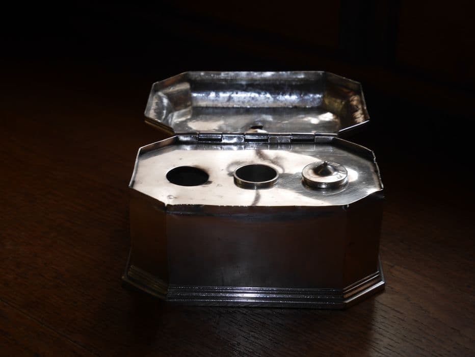 Coffret aux saintes huiles en argent.