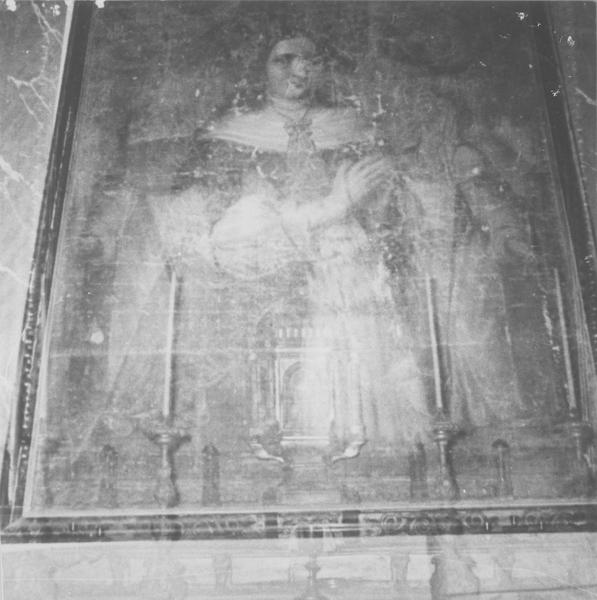 Concernant l'identité de l'homme, il s'agit peut-être du portrait du père de Francesco Maria Peres, fondateur de la chapelle, qui fut colonel au service de la république de Venise et marié à une dame de Vérone.