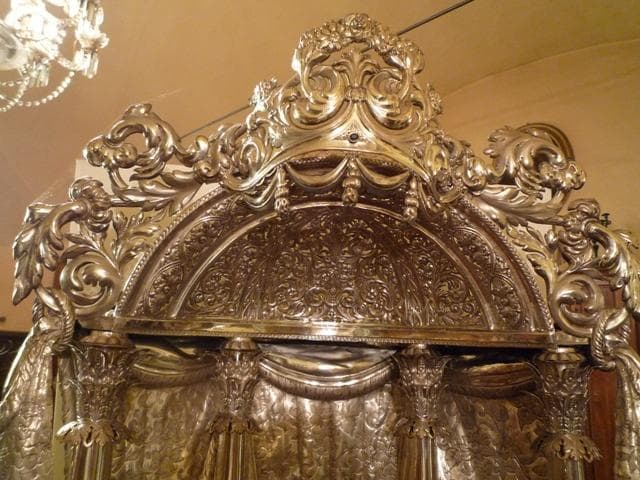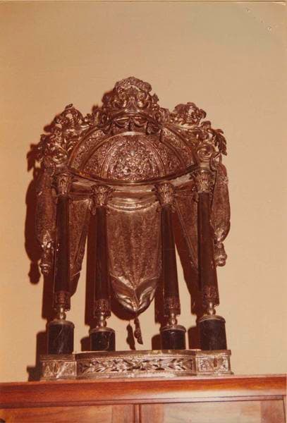 argent : fonte, décor en relief ; bois : taillé, doré, décor en relief