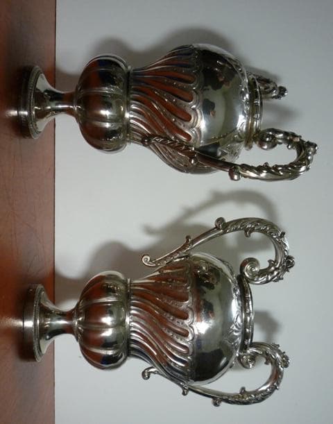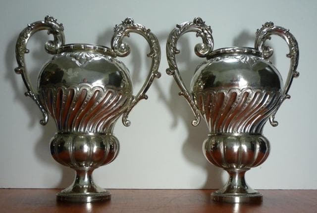Vases à fleurs à anses hautes. La partie inférieure sur pied à la forme d'un vase décoré de godrons d'où sortent des flammes stylisées s'évasant