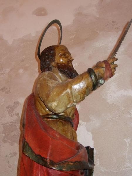 saint Barthélemy apôtre ; en pied ; portant ; auréole ; couteau ; livre