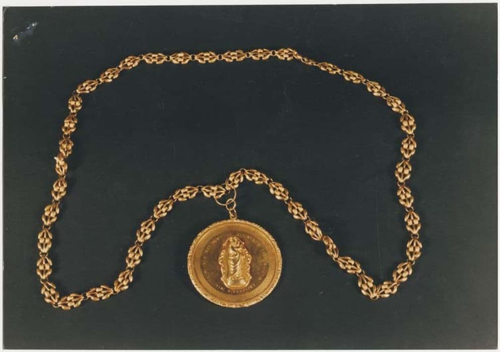 POP | Plateforme ouverte du patrimoineMédaille représentant saint Joseph et l'Enfant Jésus datée de 1844 et sa chaîne en or du 19e siècle