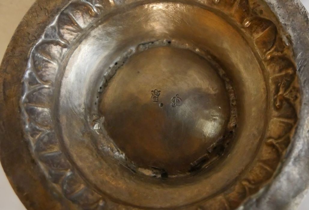 Deux types de poinçons sur cet objet : la lettre D en majuscule cursive : la lettre G en majuscule d'imprimerie timbrée d'une couronne à trois fleurons.