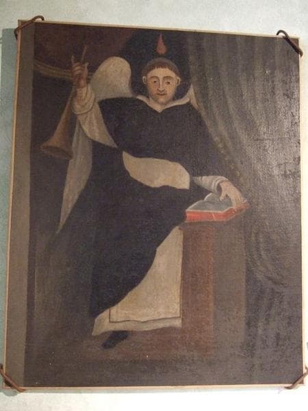 Tableau : Saint dominicain tenant une trompette (art populaire)