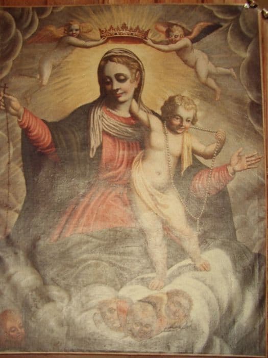 Tableau : La Vierge à l'Enfant au rosaire (art populaire)