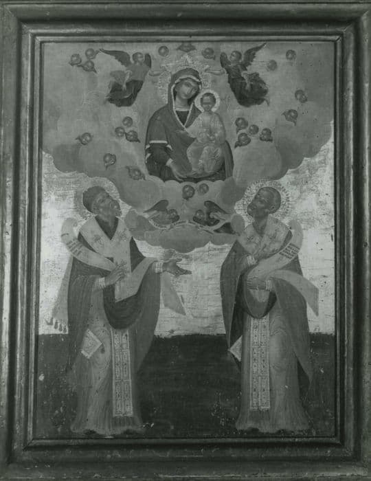 POP | Plateforme ouverte du patrimoineTableau : Apparition de la Vierge à l'Enfant et saints évêques : Saint Spiridon de Chypre et de Corfou et Saint Nicolas de Myre , atelier ionique