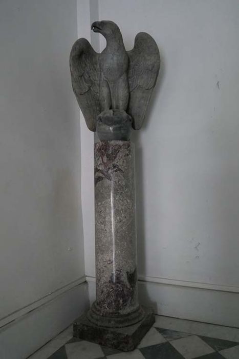 "L'aigle est en marbre de Corte ou de Serragio. Pour le socle et le fût, il s'agit sans doute de ""brèche panaché"" de Caccia."
