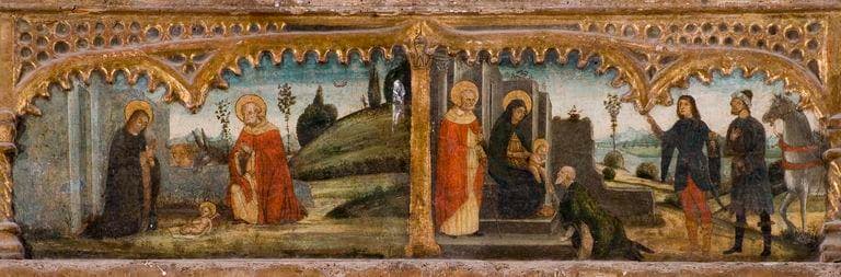 triptyque (panneaux peints) : L'Annonciation, Saint Antoine, Saint Jean-Baptiste, Saint Jacques le Majeur, Saint François, Saint Roch, Saint Sébastien, Scènes de la Vie de la Vierge et de l'enfance du Christ