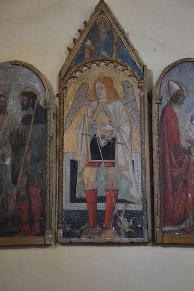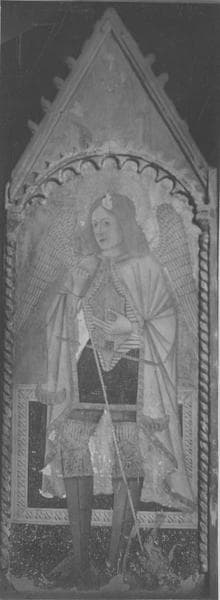 tableau (panneau peint) : Saint Michel peseur des âmes et vainqueur du dragon