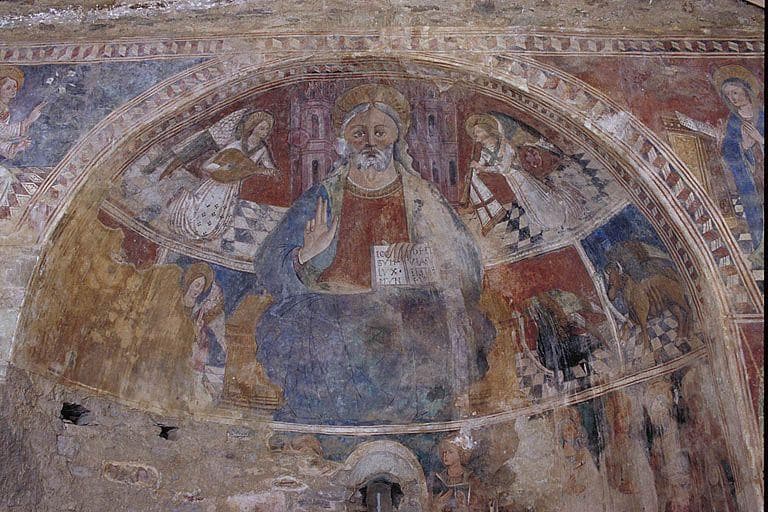 POP | Plateforme ouverte du patrimoinepeintures monumentales : Le Christ en Majesté entouré d'anges et du Tétramorphe, L'Annonciation et saint Michel, Scènes de la Passion, Figures de saints et le Jugement Dernier
