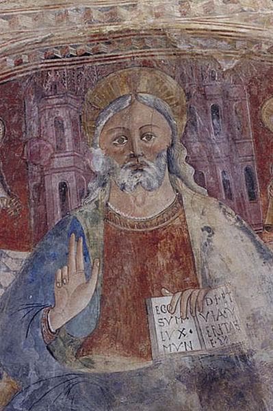 peintures monumentales : Le Christ en Majesté entouré d'anges et du Tétramorphe, L'Annonciation et saint Michel, Scènes de la Passion, Figures de saints et le Jugement Dernier