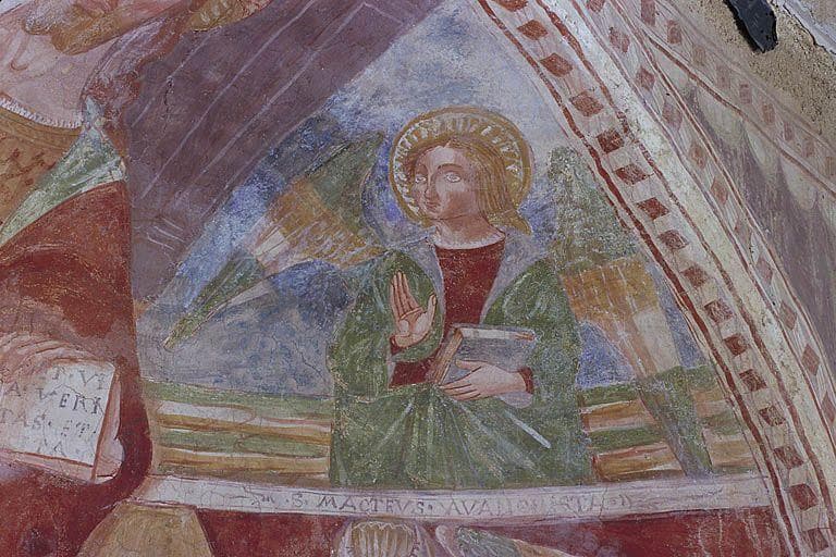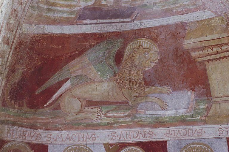 peintures monumentales : Le Christ en Majesté entouré du Tétramorphe, Les Apôtres, L'Annonciation