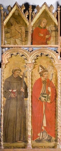 triptyque : Vierge à l'Enfant entre saint Alban, saint Antoine de Padoue, saint Augustin et saint Jean l'Evangéliste, Dieu le Père, L'Annonciation, saint Sébastien et saint Roch, Le Christ et les Apôtres