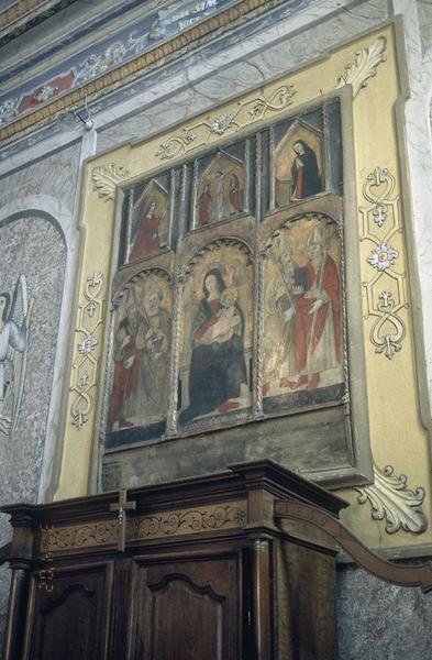 POP | Plateforme ouverte du patrimoinetriptyque (panneaux peints) : Vierge à l'Enfant entre saint Pierre, saint Vincent, saint Césaire et saint Martin, La Crucifixion, L'Annonciation
