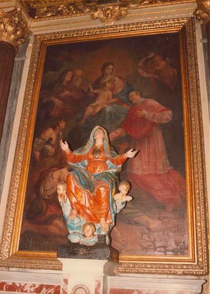 tableau : Vierge à l'Enfant entourée de sainte Anne, saint Joachim et saint Charles Borromée