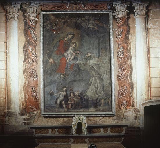 retable, tableau : Saint François remettant un bouquet de fleurs à l'Enfant Jésus