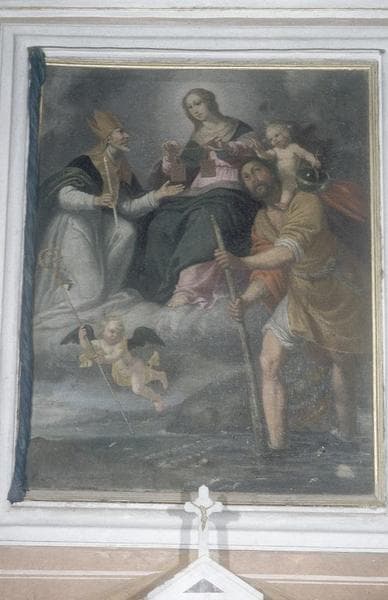 POP | Plateforme ouverte du patrimoinetableau d'autel : Saint Christophe portant l'Enfant Jésus et Notre-Dame du Mont Carmel, remettant le scapulaire à saint Erasme, cadre