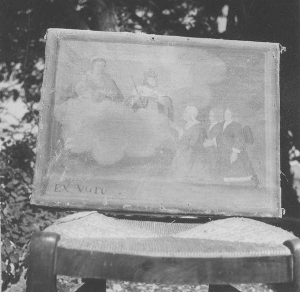 POP | Plateforme ouverte du patrimoineex-voto : la Vierge et l'Enfant et un roi apparaissant à trois personnages agenouillés