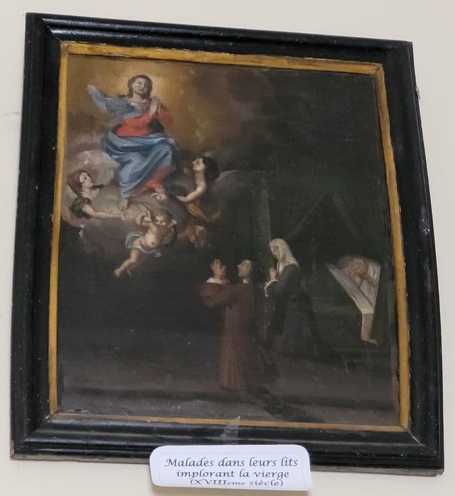 ex-voto : Famille implorant la Vierge pour la guérison d'un malade