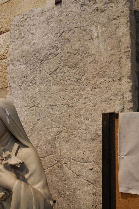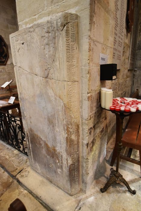 Dalle funéraire à effigie gravée de Gérauld Guy, chanoine et Capistol de Villeneuve mort en 1409.
