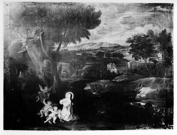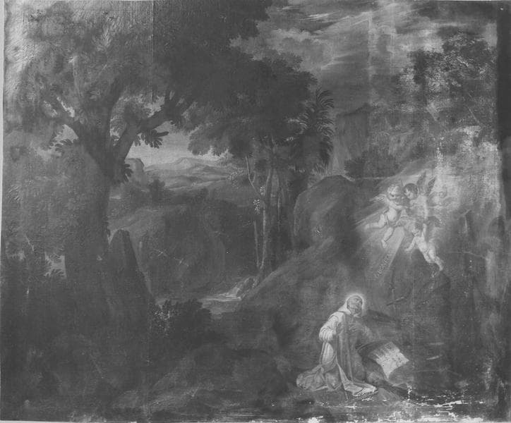 POP | Plateforme ouverte du patrimoine2 tableaux : saint Bruno et sainte Catherine de Sienne dans un paysage