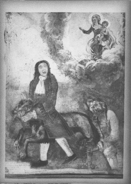 ex-voto : un père et son fils attaqués par un loup