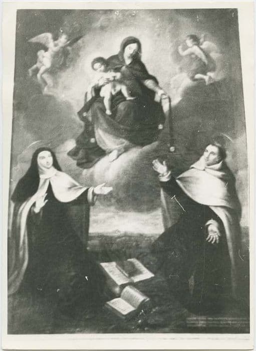 tableau ex-voto : Apparition de la Vierge à l'Enfant au scapulaire à saint Simon Stock et sainte Thérèse d'Avila