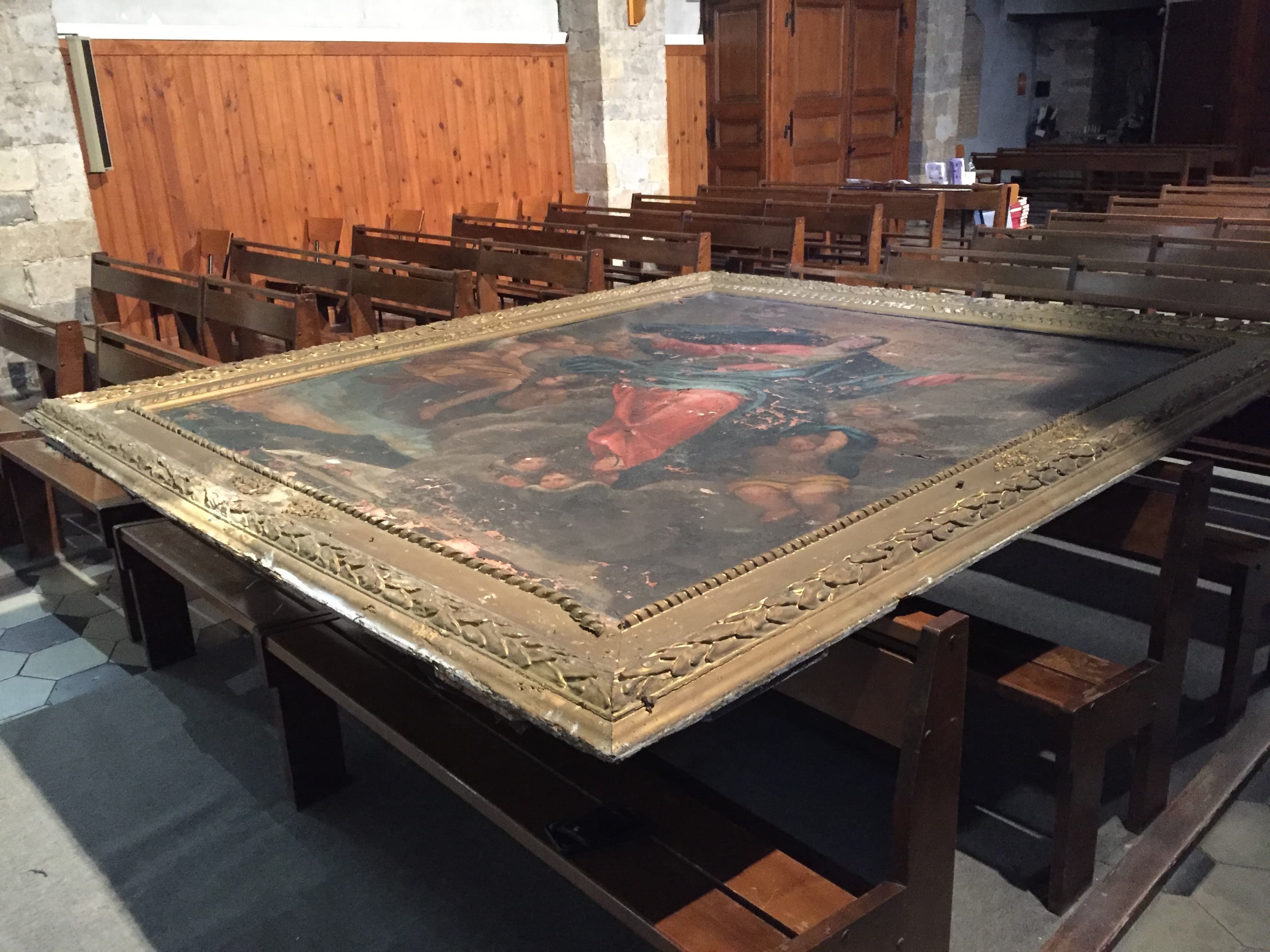 Tableau et son cadre en bois doré représentant l'Assomption de la Vierge.