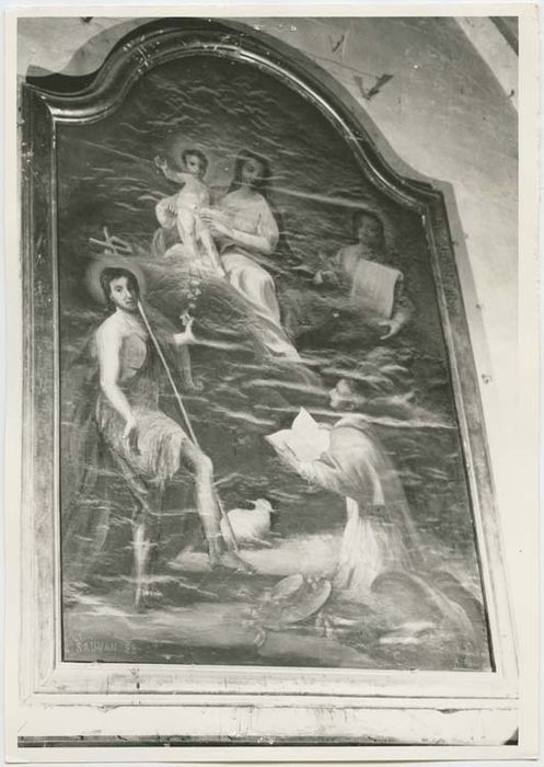 toile (support) : peinture à l'huile ; bois : taillé, doré, peint