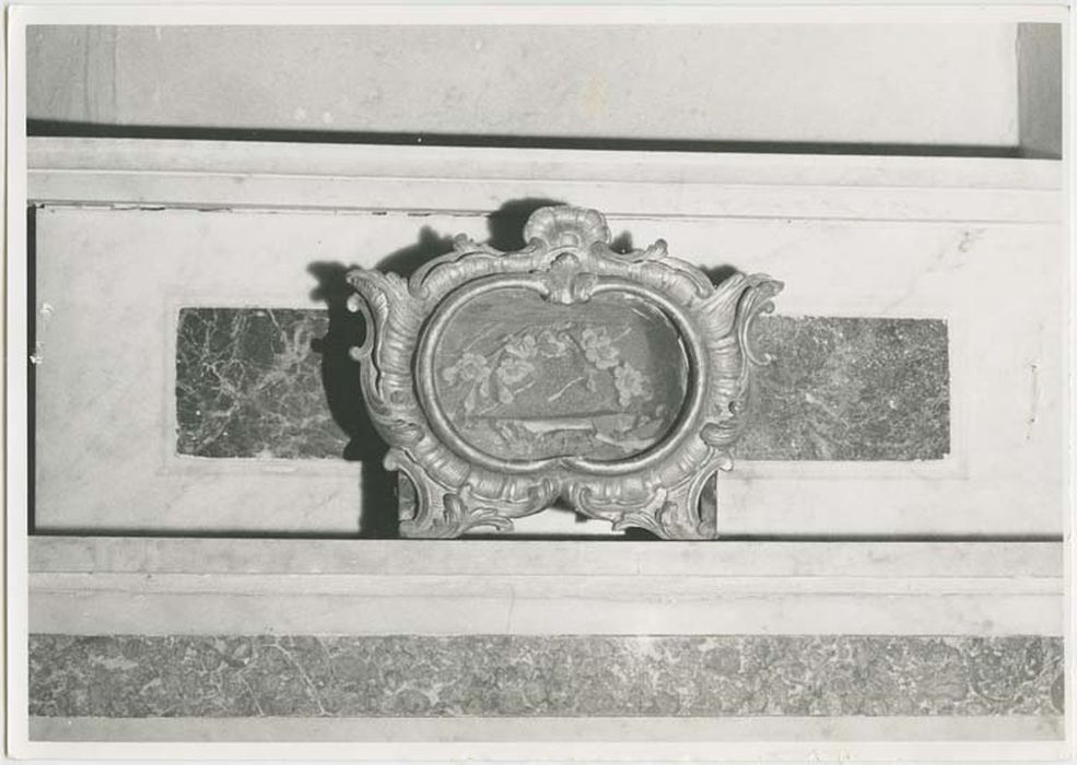 Reliquaire à décor végétal présentant dans son centre un os décoré de fleurs.