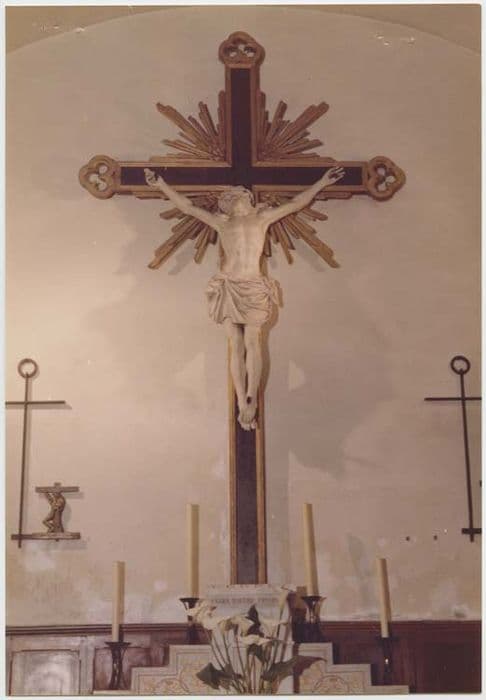 Grand crucifix en bois peint et doré et stuc.