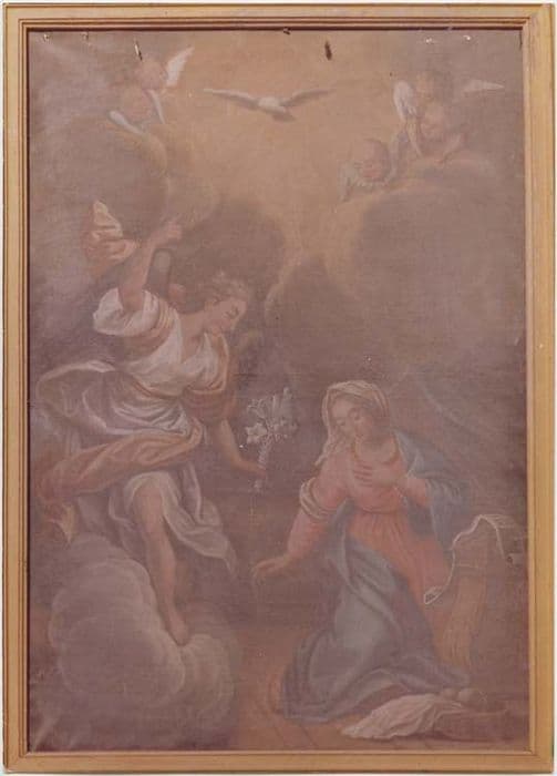 tableau : l'Annonciation, son cadre et la boiserie environnante