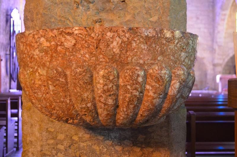 en pendant avec un autre bénitier, vaisseau central, premier pilier sud