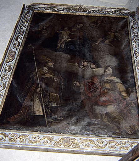 tableau et son cadre : Apparition de la Vierge à l'Enfant à saint Bonnet et Sainte Marthe