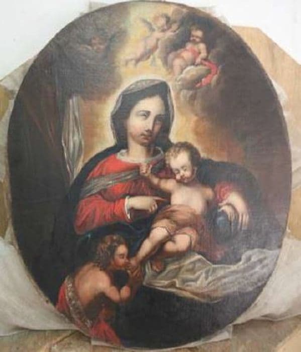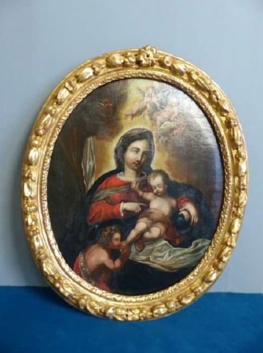 tableau et son cadre : Vierge à l'Enfant en présence de saint Jean-Baptiste