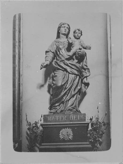2 statues (petite nature, en pendant) : Vierge à l'Enfant dite Notre-Dame de l'Escapulaire, saint Eutrope