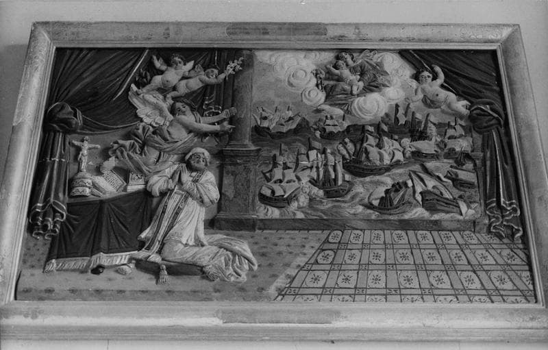 2 bas-reliefs : bataille de Lépante, Massacre des Innocents
