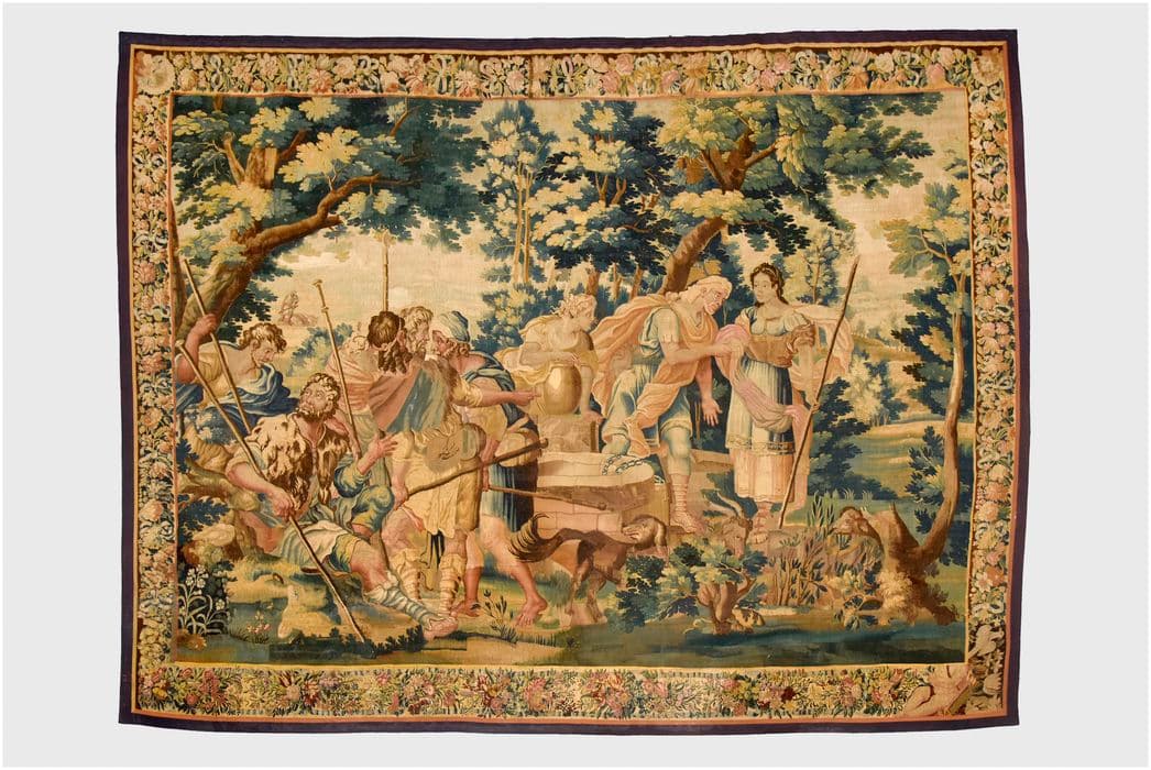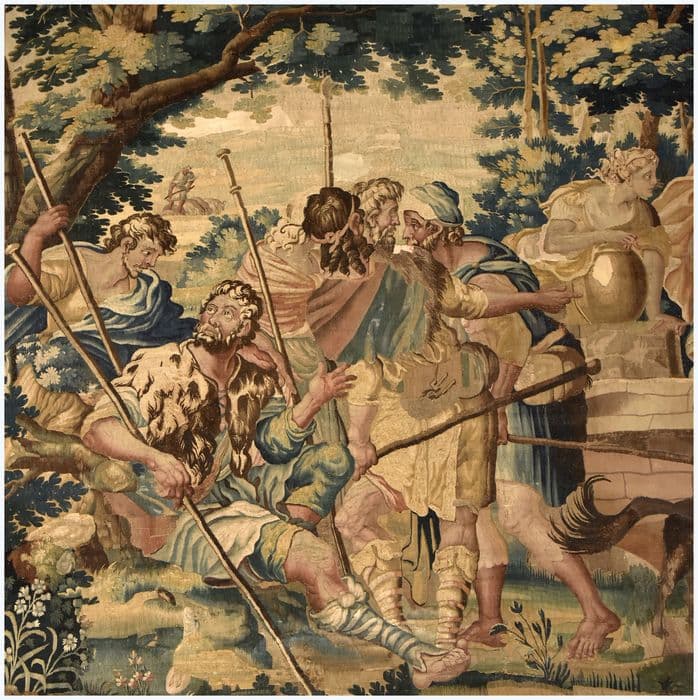 pièce murale : Eliézier et Rébecca (tenture composée de Moïse sauvé des eaux, Eliézer et Rébecca, Agar dans le désert, David et Abigaïl)