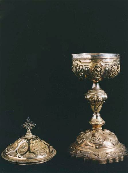 Vermeil. Le couvercle, qui n'est pas celui d'origine, porte néanmoins les mêmes poinçons.