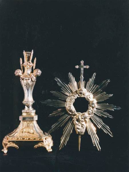 Ostensoir en vermeil, en deux parties : le pied et le bouton, la monstrance et le soleil.