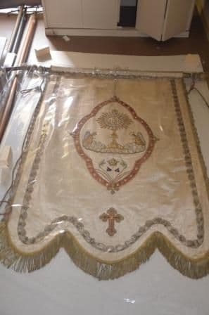 POP | Plateforme ouverte du patrimoinequatre bannières : Saint Bernard ou Saint Blaise, Vierge couronnée, Immaculée Conception, et Saint Sacrement