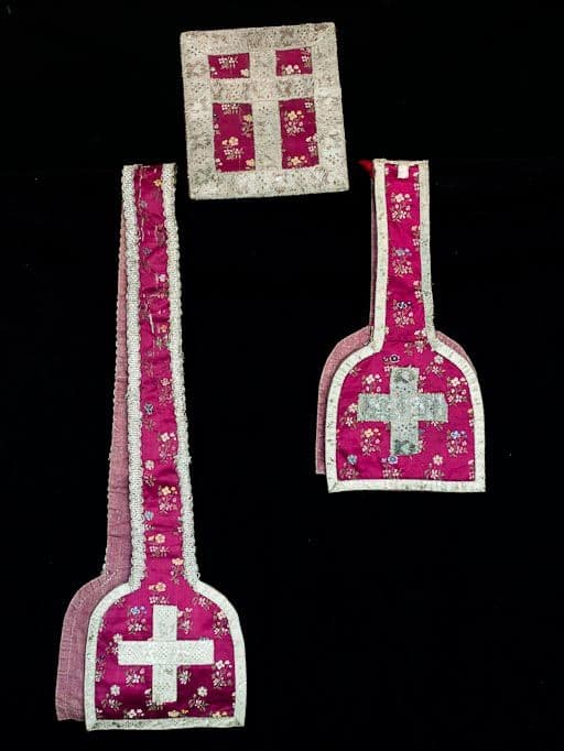 ornement liturgique catholique ; chasuble ; étole de clerc ; manipule ; voile de calice