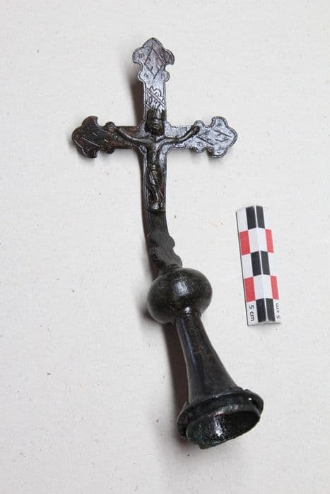 Croix en alliage cuivreux moulé et gravé.