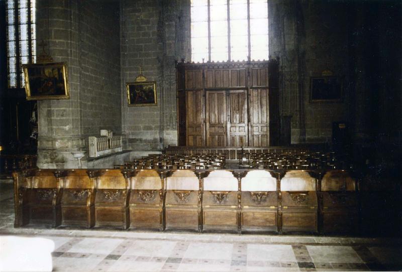 boiseries. Objet (stalle) bénéficiant d'un double classement : classement au titre immeuble, sur la liste de 1862, et arrêté au titre objet, du 4 juillet 1903.