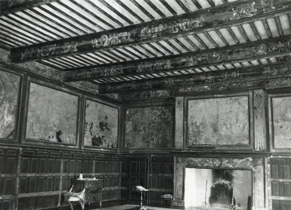 La salle dite des chevaliers de Malte avec son décore au premier étage. Décor peint de la salle dite des chevaliers de Malte, 16e siècle.