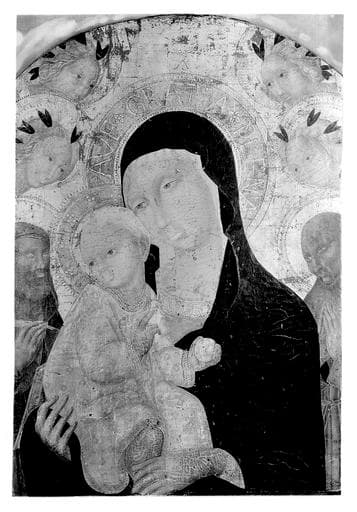 tableau : Vierge à l'Enfant entourée de saints et d'anges
