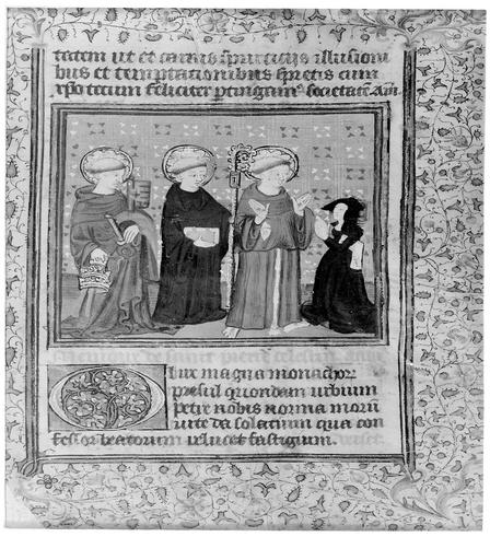 enluminure : saint Pierre célestin saint Bénigne saint François-d'Assise et une religieuse