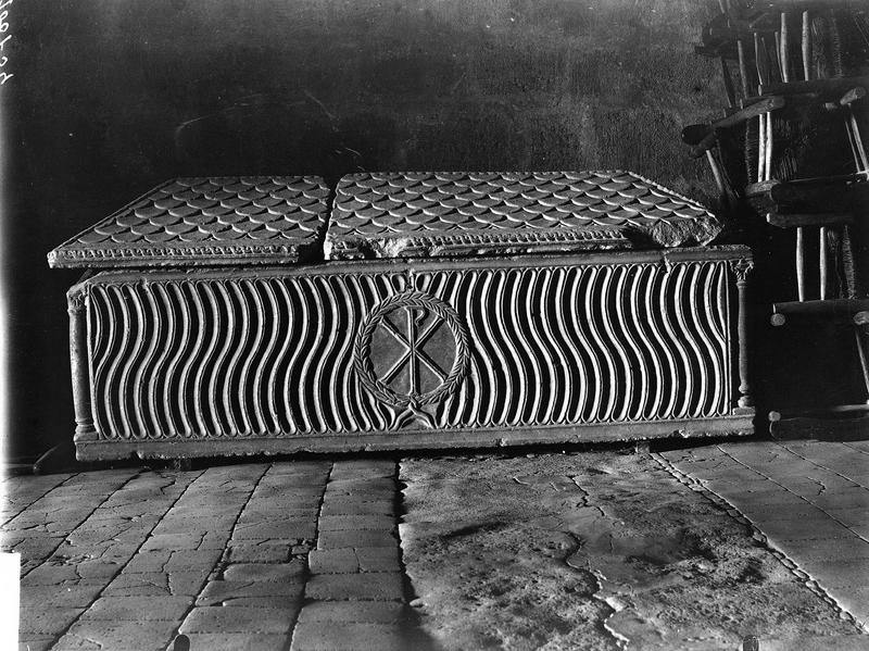 Ce sarcophage chrétien est décoré de strigiles qui couvrent les faces antérieures et les faces latérales : aux angles des colonnettes, au milieu de la face principale un chrisme dans une couronne et sur chaque face latérale une rosace.