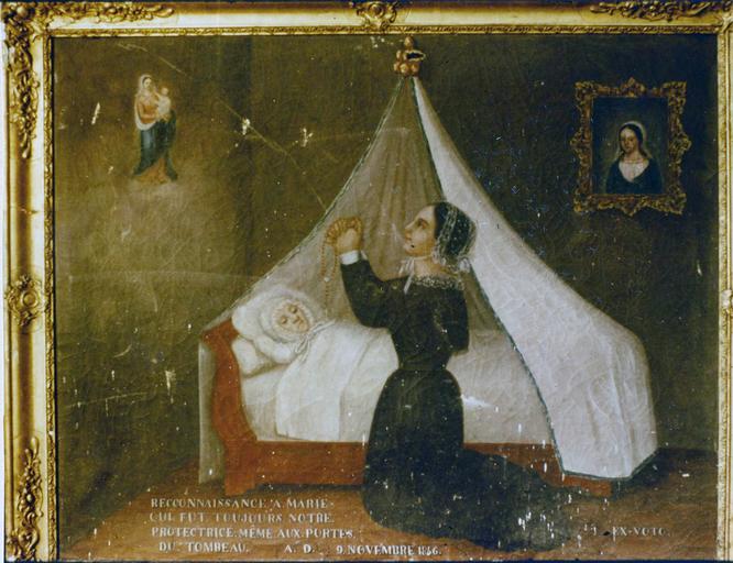 inscription : Reconnaissance à Marie, qui fut toujours notre protectrice, même aux portes du tombeau. A. D. 9 novembre 1846. Date : 1846.